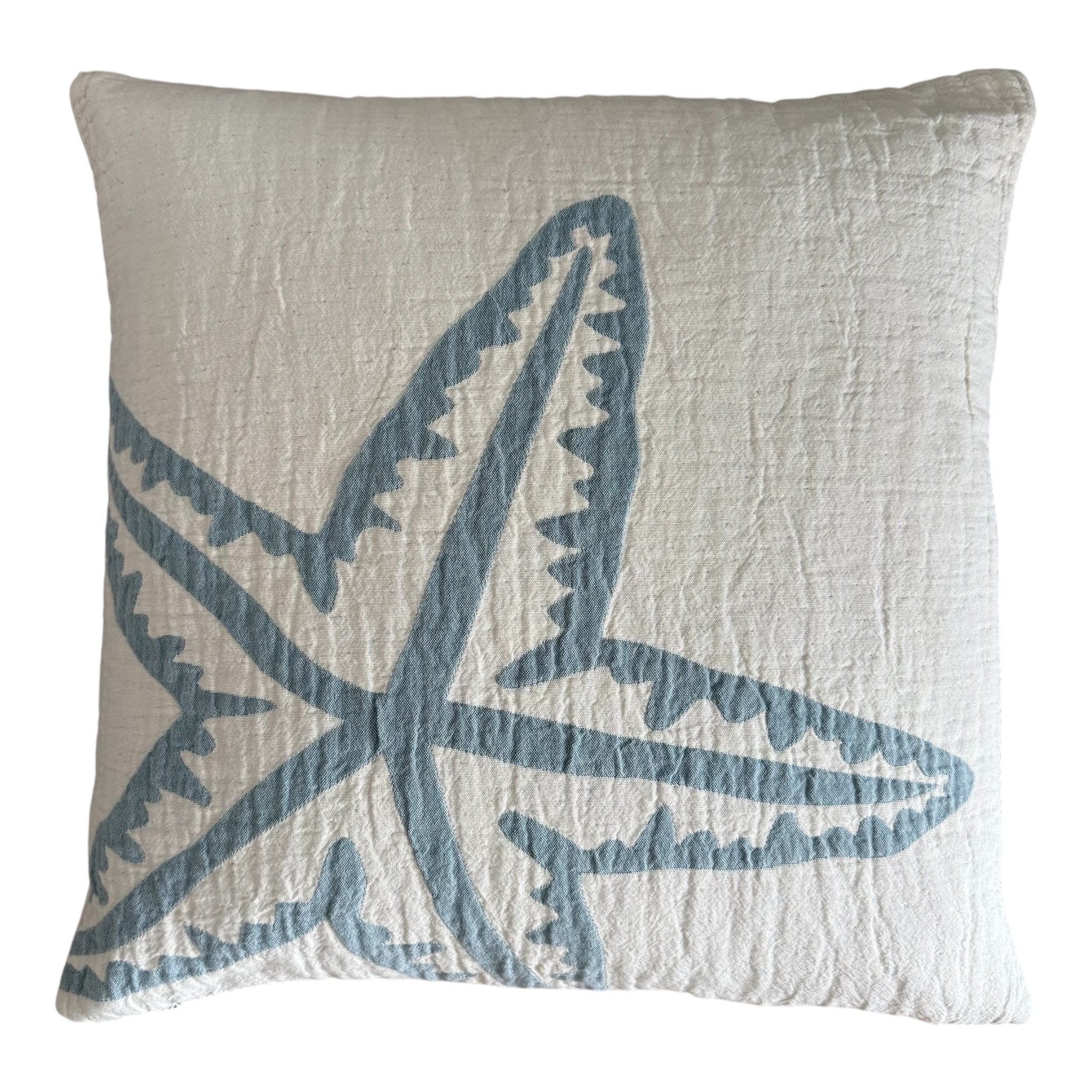 Kissenhülle Offwhite-Aqua-Blue Seestern -50 x 50 cm