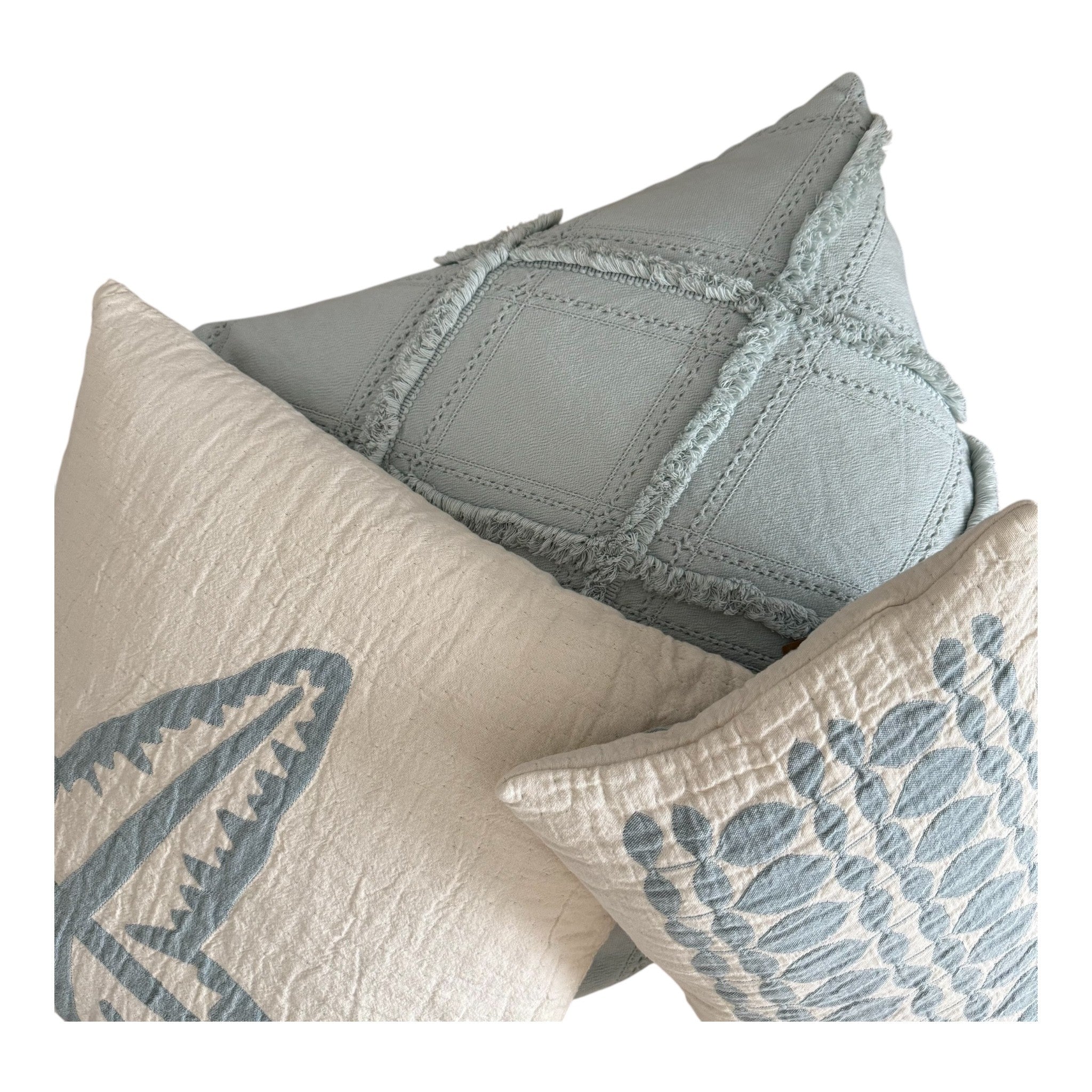 Erhältlich ist die Kissenhülle sowohl einzeln als auch mit Füllung, sodass Sie flexibel nach Ihren Bedürfnissen wählen können. Kombinieren Sie die Kissenhülle mit ihren Lieblingsstücken und schaffen Sie ein individuelles Wohnambiente. Durch ihren dezenten Offwhite-Ton kombiniert mit einer Frische von Aqua-Blue harmoniert sie perfekt mit nahezu jedem Einrichtungsstil und setzt dabei gleichzeitig edle Akzente. Unsere Designs sind darauf ausgerichtet, Ihr Zuhause stilvoll und einzigartig zu gestalten.